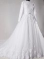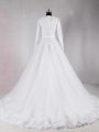 Flirting White Wedding Dresses Scalloped Long Sleeves Brush Train Lace Up