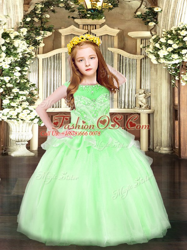 Floor Length Apple Green Girls Pageant Dresses Scoop Sleeveless Zipper