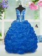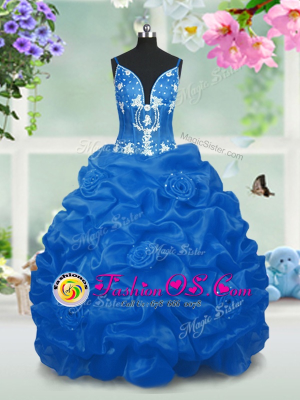 Home >  Special Occasion Dresses >  Mini Quinceanera Dresses > Floor Length Aqua Blue Little Girl Pageant Dress Taffeta Sleeveless Beading and Pick Ups