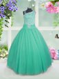 Floor Length Aqua Blue Pageant Gowns For Girls Tulle Sleeveless Beading