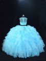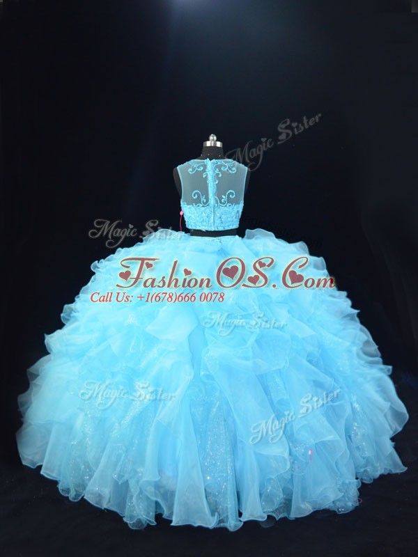 Home >  Quinceanera Dresses >  In Stock Quinceanera Dresses > Floor Length Aqua Blue Sweet 16 Dresses Scoop Sleeveless Zipper
