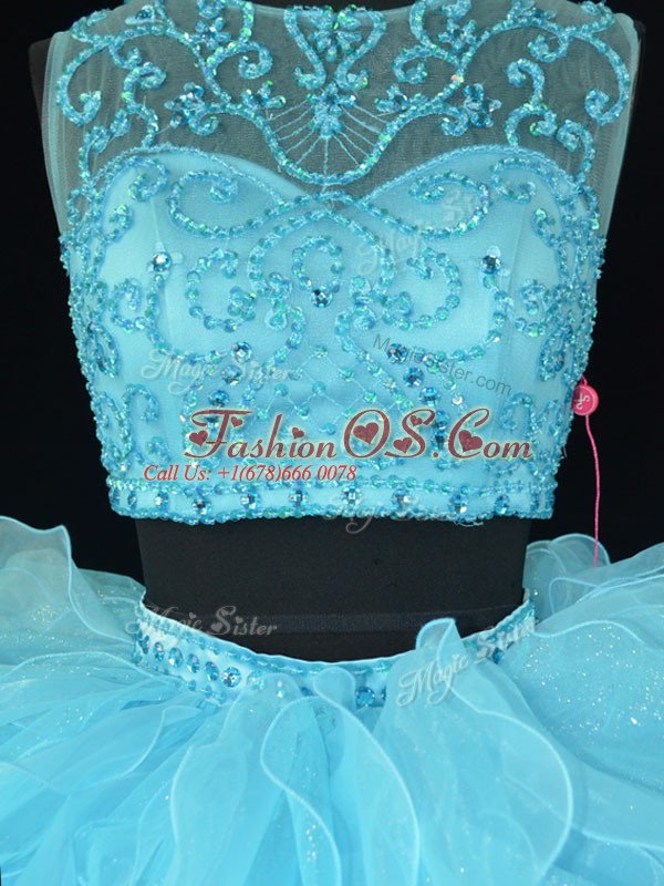 Floor Length Aqua Blue Sweet 16 Dresses Scoop Sleeveless Zipper