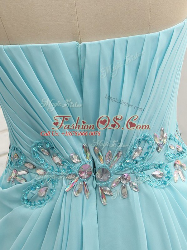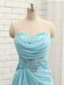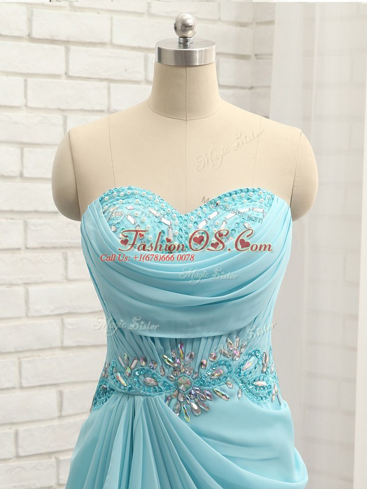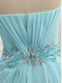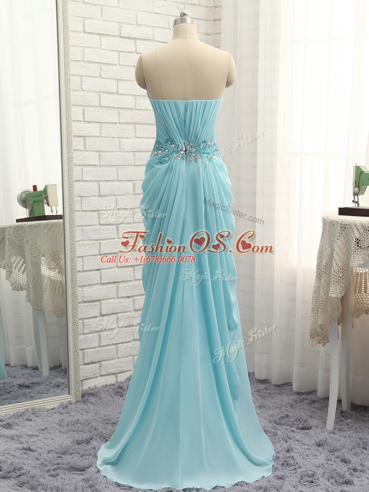 Floor Length Baby Blue Celebrity Inspired Dress Chiffon Sleeveless Beading and Ruching