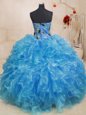 Floor Length Baby Blue Quinceanera Gown Organza Sleeveless Beading and Appliques and Ruffles