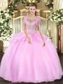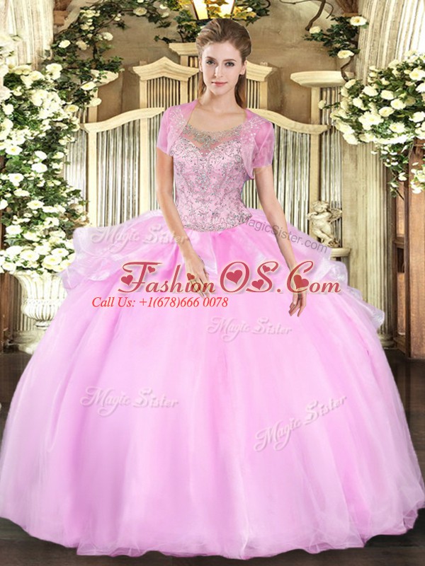 Floor Length Baby Pink 15 Quinceanera Dress Tulle Sleeveless Beading and Ruffles