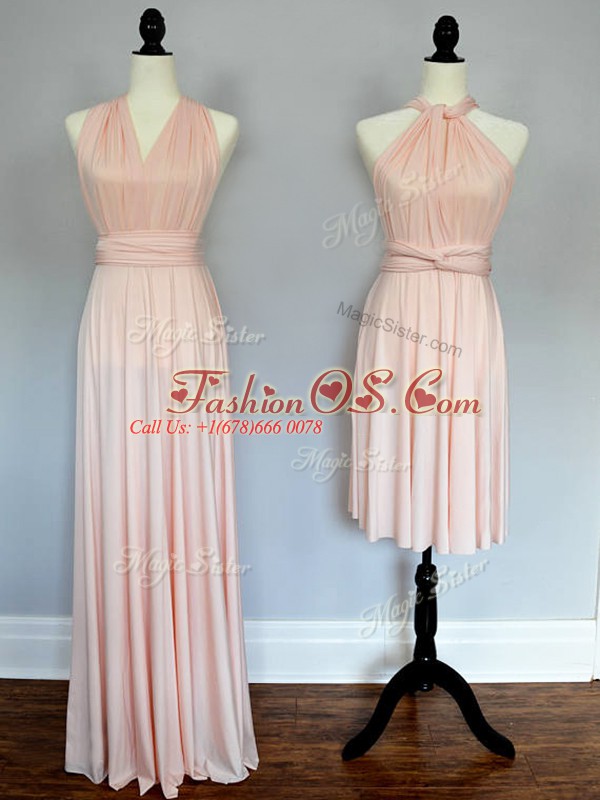 Floor Length Baby Pink and Peach Quinceanera Court of Honor Dress Halter Top Sleeveless Lace Up