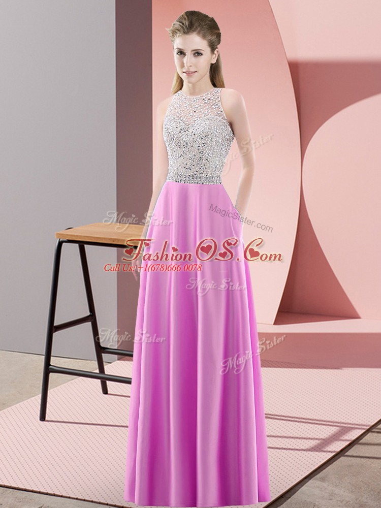 Floor Length Backless Dress Like A Star Lilac for Prom and Party with Beading