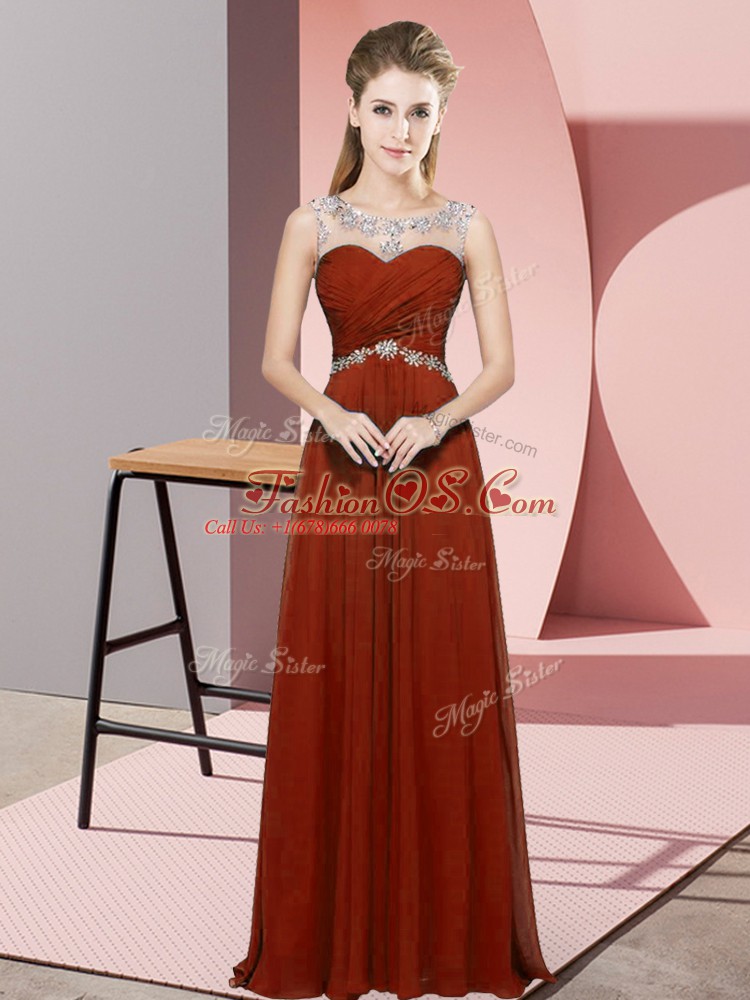 Floor Length Backless Prom Dresses Rust Red for Prom and Party and Military Ball with Beading
