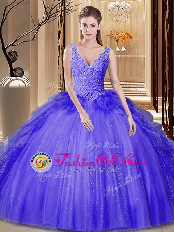 Floor Length Backless Quinceanera Dresses Lavender and In for Military Ball and Sweet 16 and Quinceanera with Appliques and Ruffles and Sequins