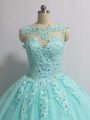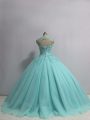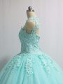 Floor Length Ball Gowns Sleeveless Aqua Blue 15th Birthday Dress Lace Up