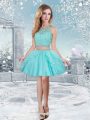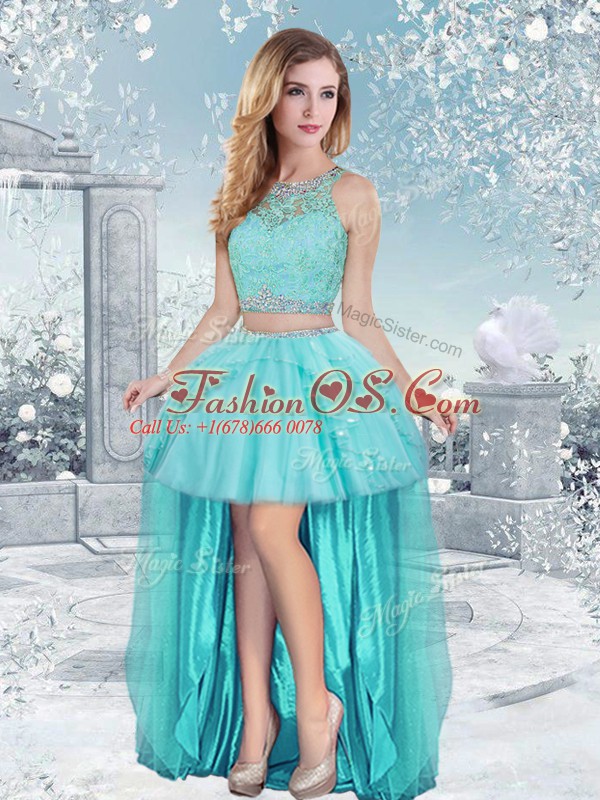 Floor Length Ball Gowns Sleeveless Aqua Blue Quinceanera Dress Clasp Handle