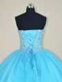 Floor Length Ball Gowns Sleeveless Aqua Blue Sweet 16 Dress Lace Up