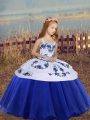 Floor Length Ball Gowns Sleeveless Blue Little Girls Pageant Dress Lace Up