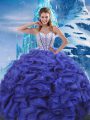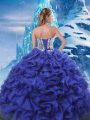 Floor Length Ball Gowns Sleeveless Blue Quinceanera Dresses Lace Up