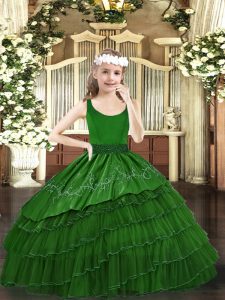 Floor Length Ball Gowns Sleeveless Dark Green Pageant Gowns For Girls Zipper