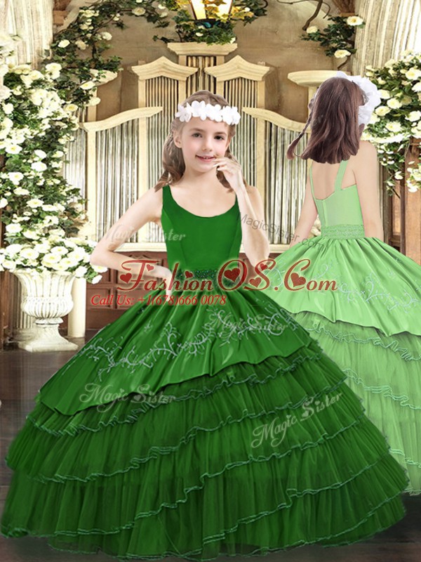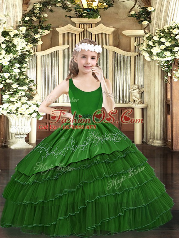 Home >  Special Occasion Dresses >  Pretty Little Girl Pageant Dresses > Floor Length Ball Gowns Sleeveless Dark Green Pageant Gowns For Girls Zipper