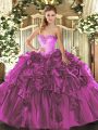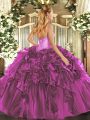 Floor Length Ball Gowns Sleeveless Fuchsia Quinceanera Dress Lace Up