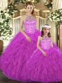 Floor Length Ball Gowns Sleeveless Fuchsia Sweet 16 Dress Lace Up