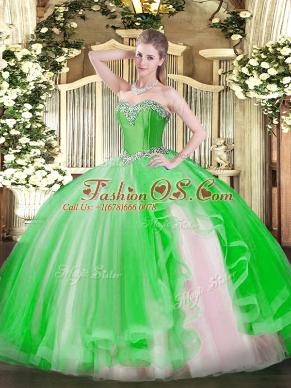 Home >  Quinceanera Dresses >  Fast Delivery Quinceanera Dresses > Floor Length Ball Gowns Sleeveless Green Sweet 16 Quinceanera Dress Lace Up