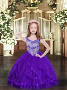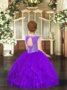 Floor Length Ball Gowns Sleeveless Purple Child Pageant Dress Lace Up