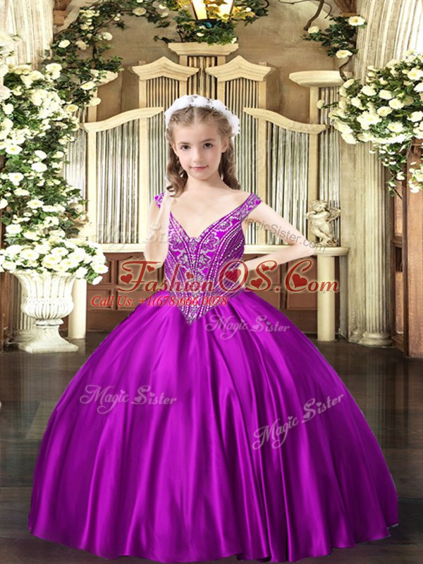 Home >  Special Occasion Dresses >  Beautiful Kids Pageant Dresses > Floor Length Ball Gowns Sleeveless Purple Pageant Dress Lace Up