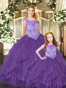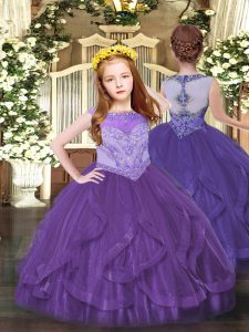 Floor Length Ball Gowns Sleeveless Purple Quinceanera Gowns Lace Up