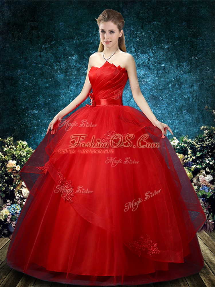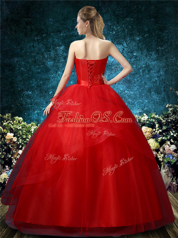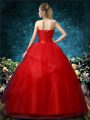 Floor Length Ball Gowns Sleeveless Red Wedding Gown Lace Up