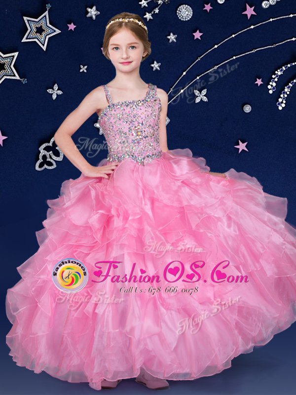 Floor Length Ball Gowns Sleeveless Rose Pink Flower Girl Dresses for Less Zipper
