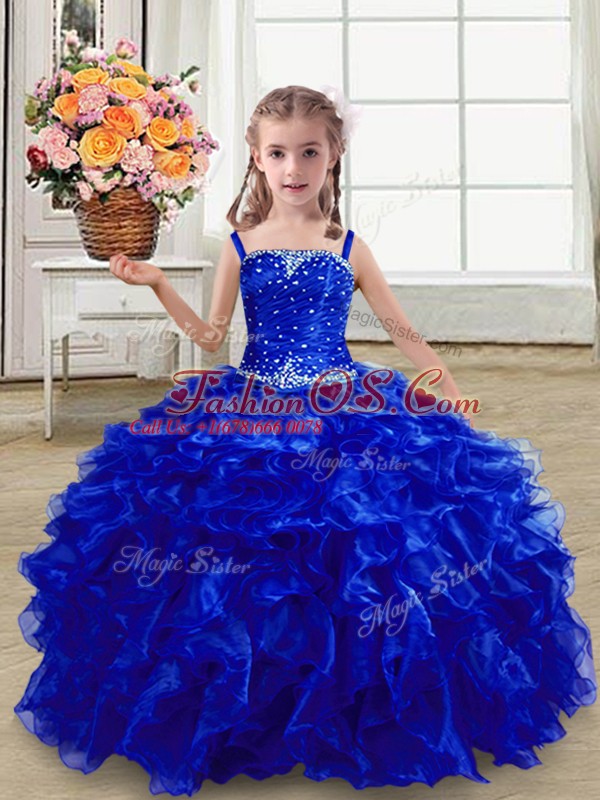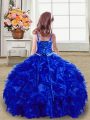 Floor Length Ball Gowns Sleeveless Royal Blue Child Pageant Dress Lace Up
