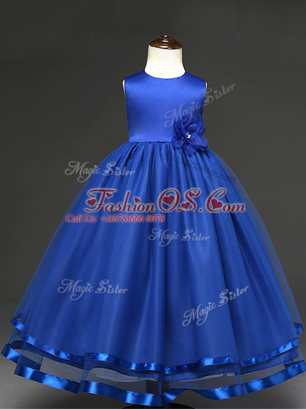 Floor Length Ball Gowns Sleeveless Royal Blue Little Girl Pageant Dress Zipper