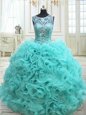 Floor Length Ball Gowns Sleeveless White and Blue Quince Ball Gowns Lace Up