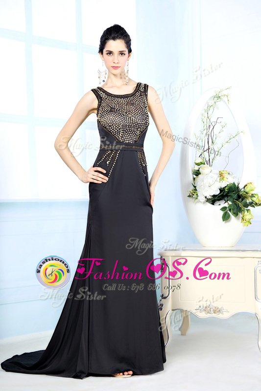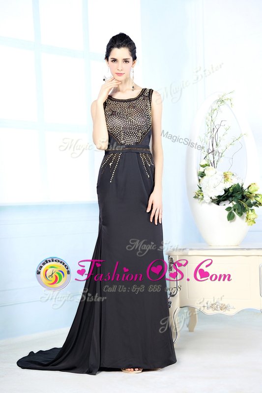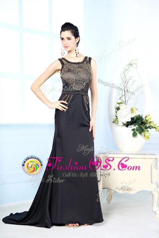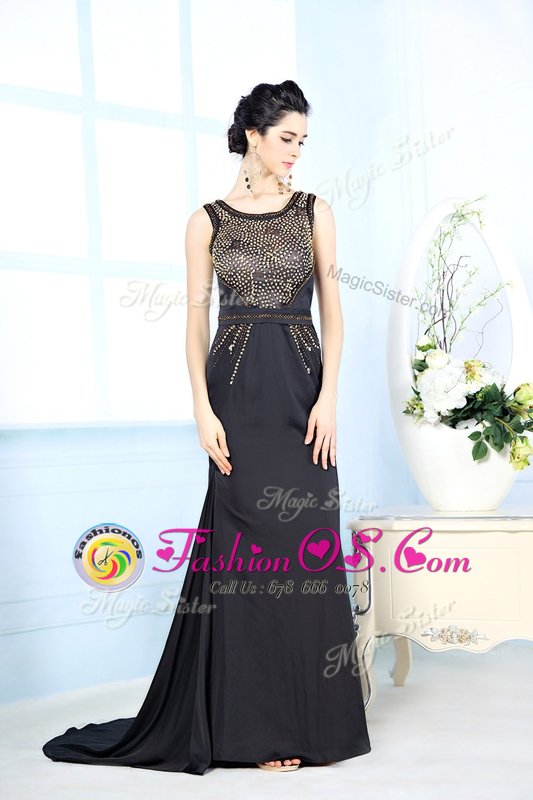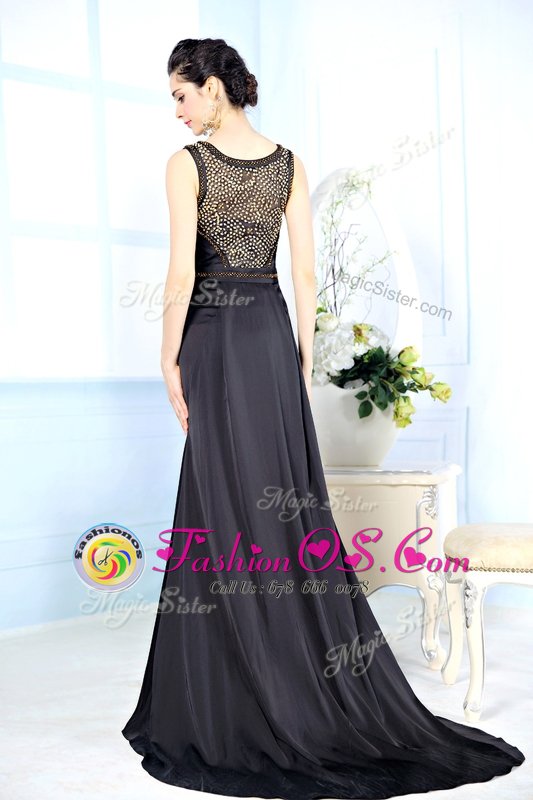 Floor Length Black Red Carpet Gowns Chiffon Sleeveless Beading