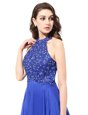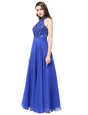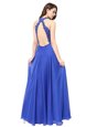 Floor Length Blue Evening Dress Halter Top Sleeveless Backless