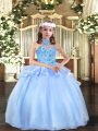 Floor Length Blue Girls Pageant Dresses Organza Sleeveless Appliques