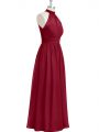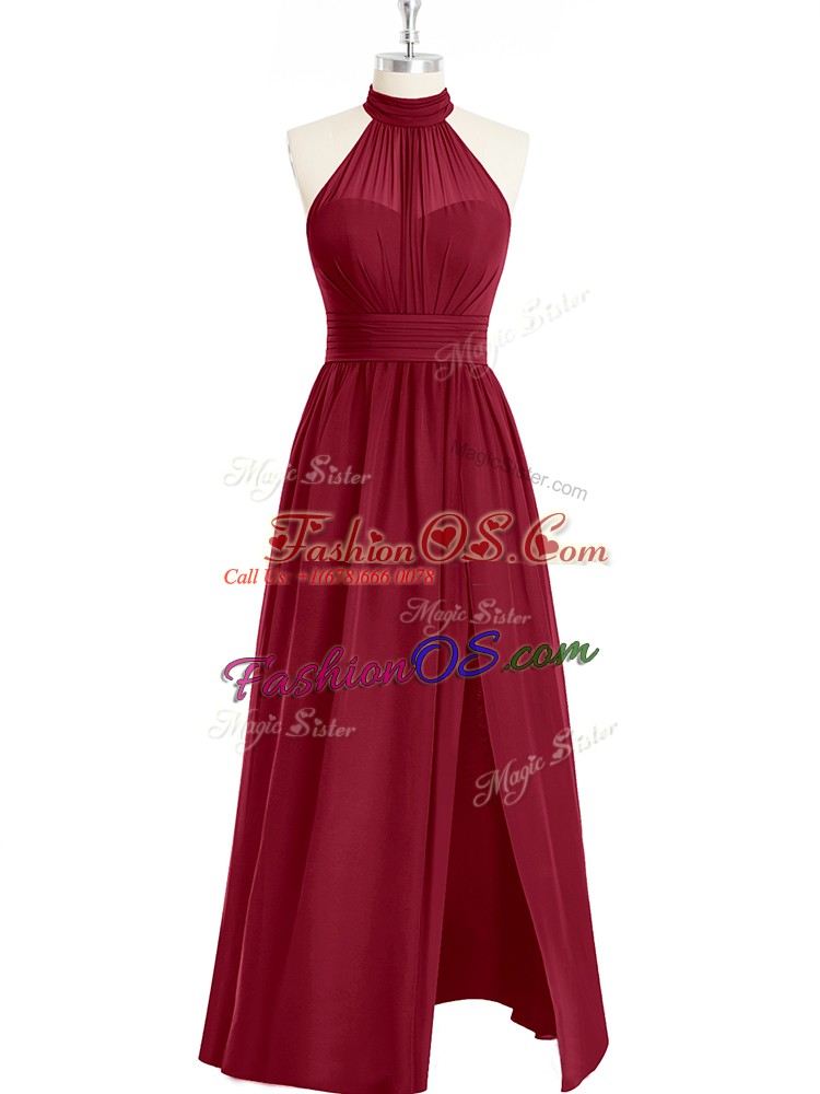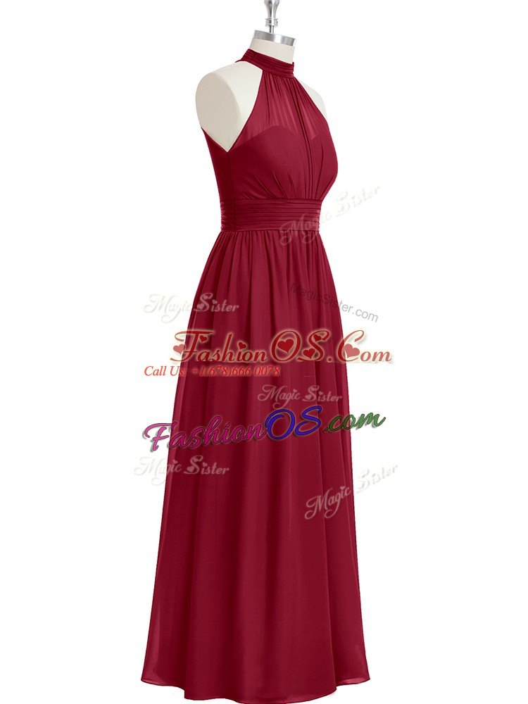 Floor Length Burgundy Evening Dress Chiffon Sleeveless Ruching