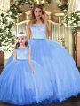 Floor Length Clasp Handle Quinceanera Dresses Blue for Military Ball and Sweet 16 and Quinceanera with Lace