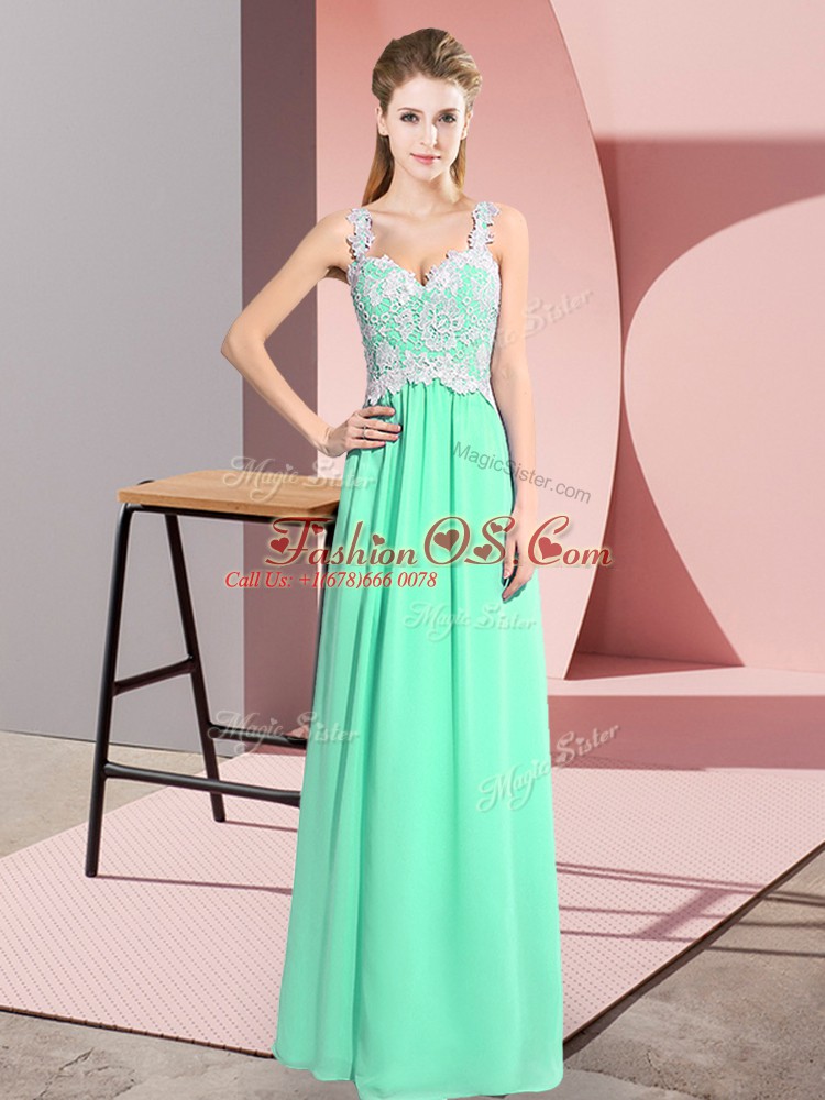 Floor Length Empire Sleeveless Apple Green Prom Evening Gown Zipper
