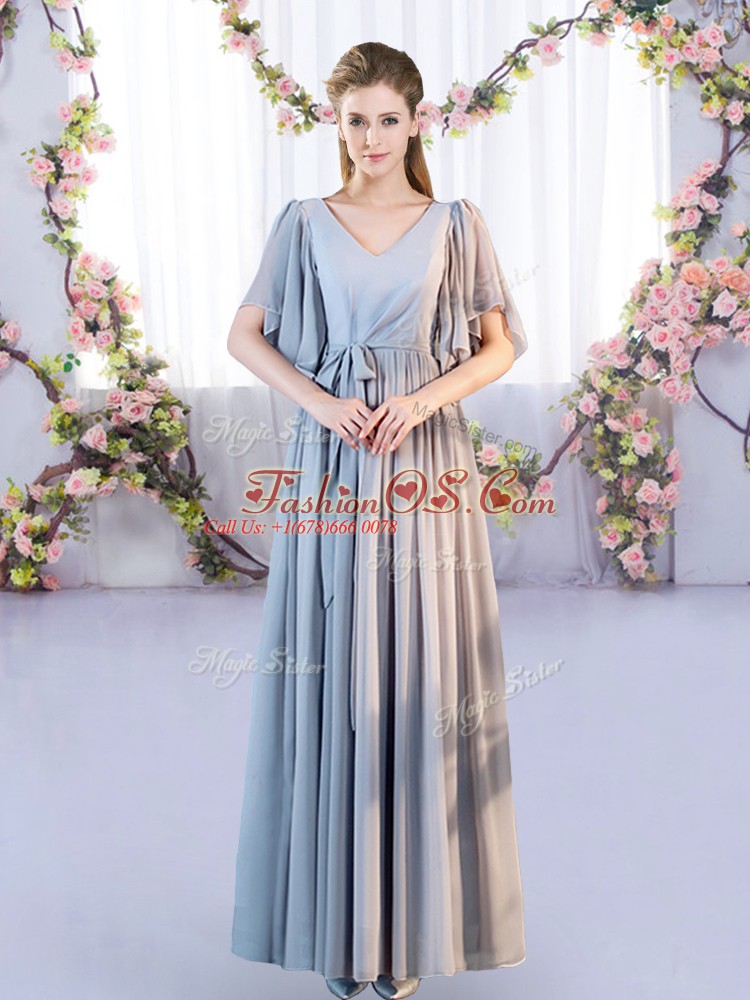 Home >  Bridesmaid Dresses >  Perfect Bridesmaid Dresses > Floor Length Empire Sleeveless Grey Wedding Guest Dresses Lace Up