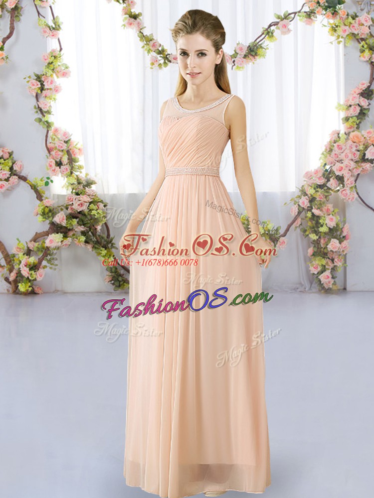 Floor Length Empire Sleeveless Peach Vestidos de Damas Lace Up