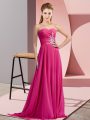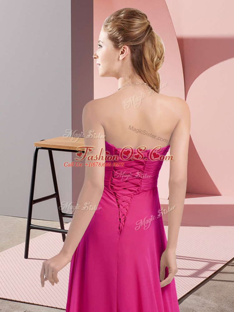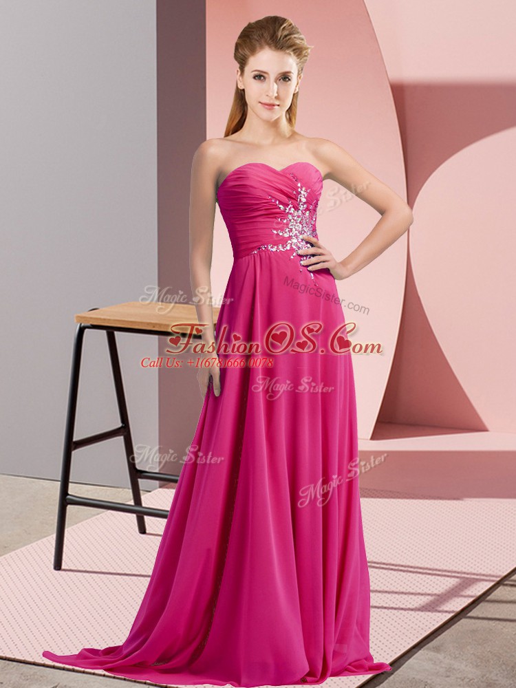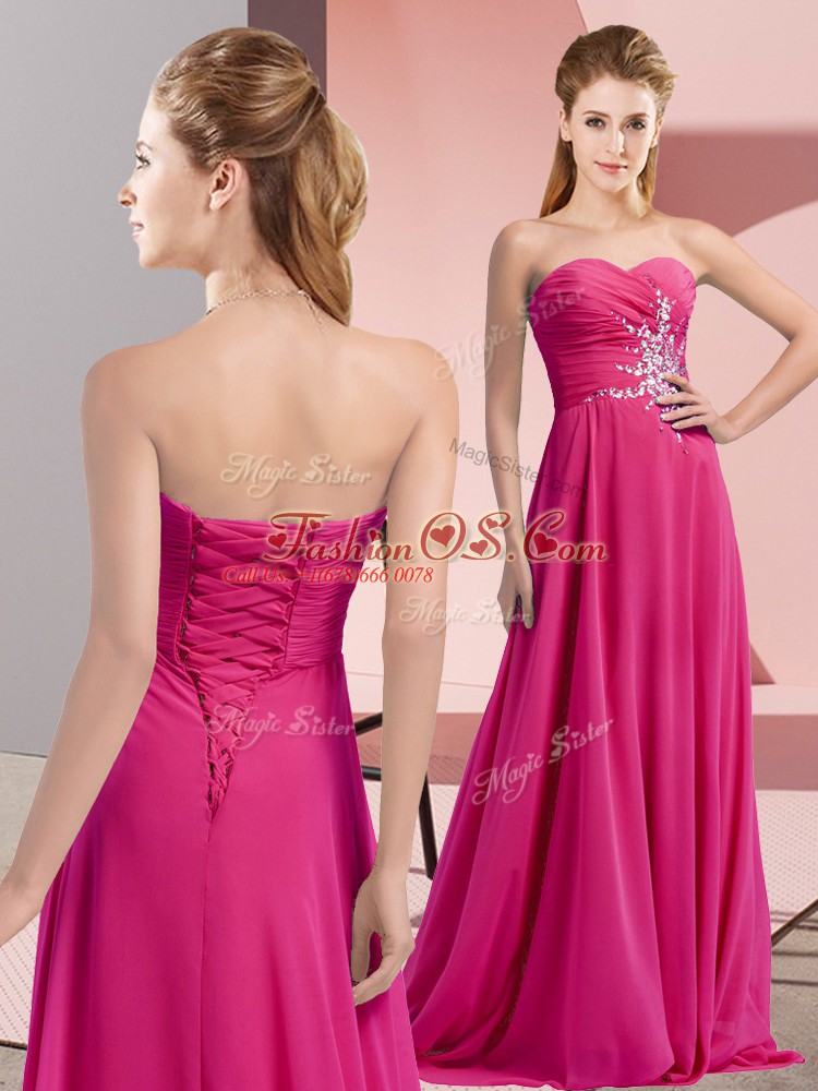 Floor Length Fuchsia Chiffon Sleeveless Beading and Ruching