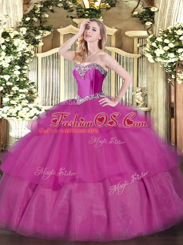Home >  Quinceanera Dresses >  Fast Delivery Quinceanera Dresses > Floor Length Fuchsia Quinceanera Gowns Tulle Sleeveless Beading and Ruffled Layers