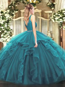Floor Length Fuchsia Quinceanera Gowns V-neck Sleeveless Zipper