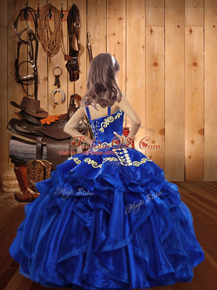 Floor Length Gold Pageant Dress for Girls V-neck Sleeveless Lace Up