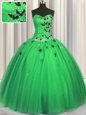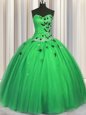 Floor Length Green Quinceanera Gowns Tulle Sleeveless Beading and Appliques