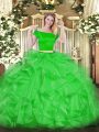 Floor Length Green Sweet 16 Dress Organza Short Sleeves Appliques and Ruffles