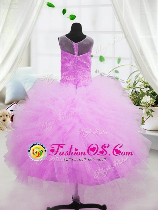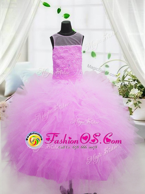 Floor Length Hot Pink Pageant Gowns For Girls Scoop Sleeveless Zipper