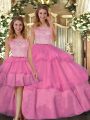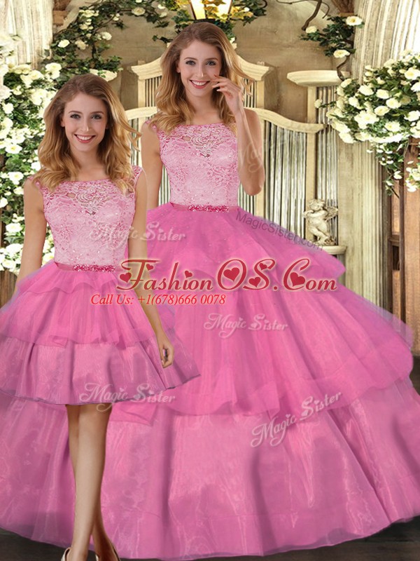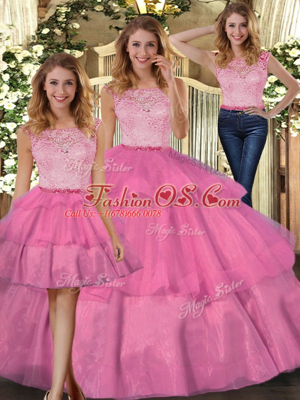 Floor Length Hot Pink Quince Ball Gowns Scoop Sleeveless Zipper