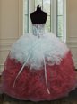 Home >  Quinceanera Dresses >  Luxurious Quinceanera Dresses > Floor Length Lace Up 15th Birthday Dress Red and In for Military Ball and Sweet 16 and Quinceanera with Embroidery and Pick Ups