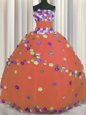 Floor Length Lace Up Ball Gown Prom Dress Rust Red and In for Military Ball and Sweet 16 and Quinceanera with Hand Made Flower