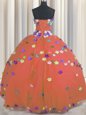 Home >  Quinceanera Dresses >  Fashionable Quinceanera Dresses > Floor Length Lace Up Ball Gown Prom Dress Rust Red and In for Military Ball and Sweet 16 and Quinceanera with Hand Made Flower